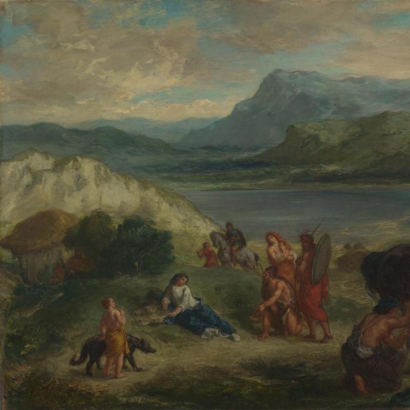 ‘Flochetage’ is particularly associated with Delacroix’s later works, notably his murals in the Chapelle des Saints-Anges of Saint-Sulpice (1849–1860), Paris and Ovid among the Scythians.