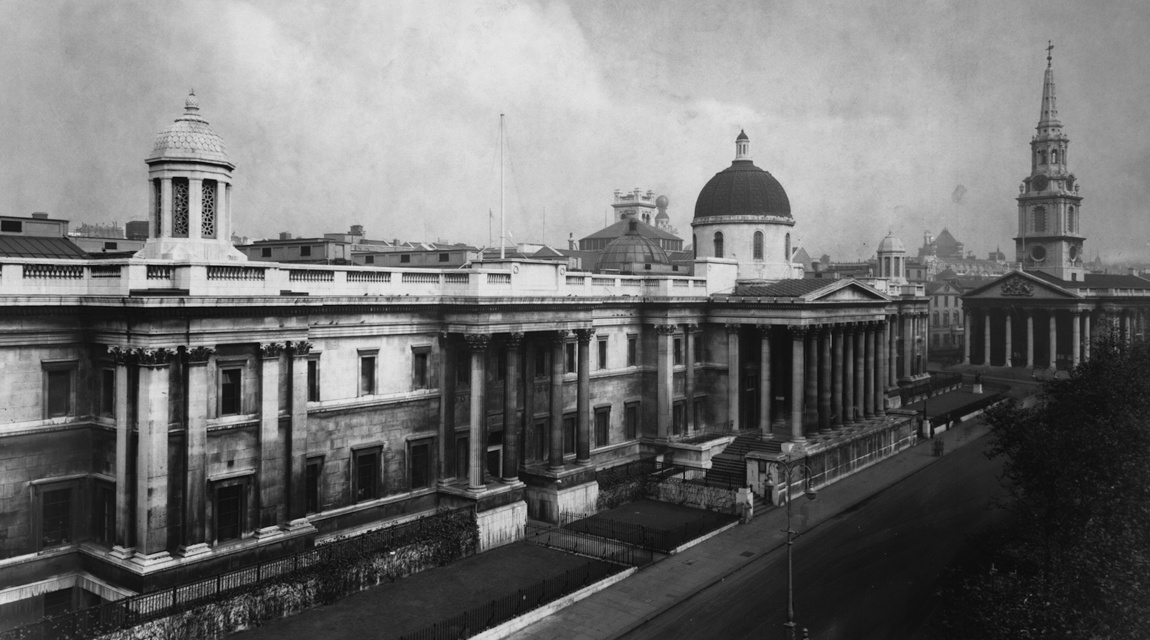 The National Gallery found its beginnings in Angerstein’s London townhouse at 100 Pall Mall. It soon became apparent that the paintings would need to be moved to a more substantial location and it was agreed that a new building should be constructed for the national collection. The completed building at Trafalgar Square, designed by the architect William Wilkins, opened as the new home of the National Gallery in 1838.