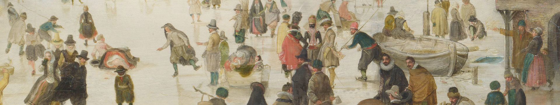 In the 17th century, the Little Ice Age settled over Northern Europe. Rivers and canals in Holland froze over and people took to the ice for work and leisure. They did their business, gossiped, tended children, had fun – all on skates. Hendrick Avercamp, just starting out as an artist, took to it too. His life's work became the depiction of winter scenes full of incident, featuring the kinds of people he knew from the town of Kampen.