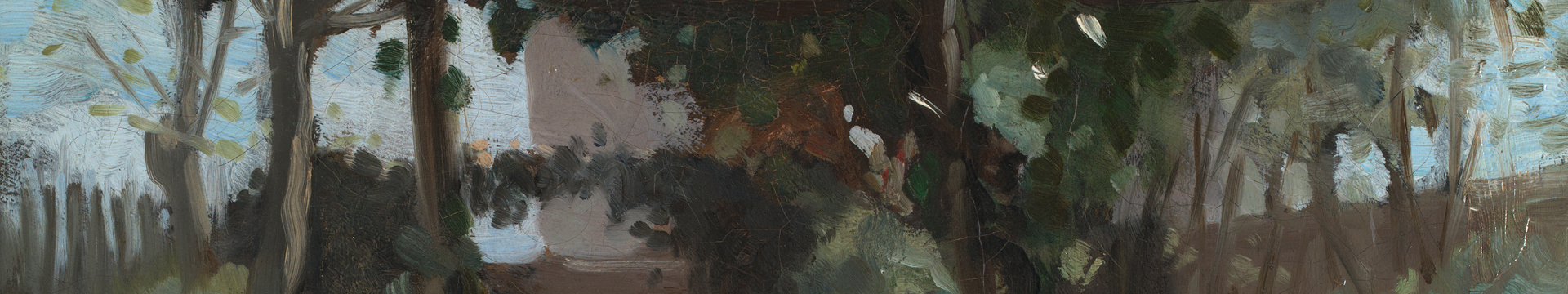 Although retrospectively dated 1874 on the canvas, it was probably painted the following year either at Saint-Enogat in Brittany, where Sargent spent the summer of 1875, or in the picturesque village of Grez-sur-Loing in the forest of Fontainebleau, where Sargent, aged about 19 years old, would hang out with his fellow students from the École des Beaux-Arts in Paris.