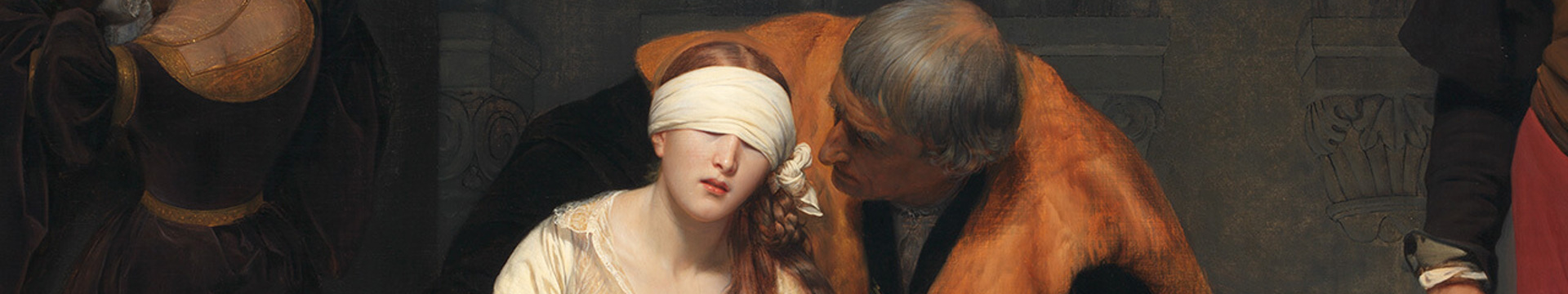 Paul Delaroche's painting The Execution of Lady Jane Grey has quite a following. The dramatic, almost theatrical image shows the young queen moments from death. The painting itself has quite a few stories to tell, not least that of the rebellious woman sculptor, Félicie de Fauveau (1801‒1886) whose imagination produced an earlier magnificent frame, segments of which we can still see today.