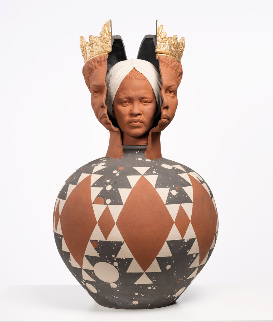 In Bahamian-born artist Tavares Strachan’s 2023 ceramic sculpture, the crowned head of singer-songwriter Nina Simone splits open to reveal the Queen of Sheba, who wears a modest head wrap. By connecting a legendary historical figure with a 20th-century musical icon, Strachan – whose work investigates the lost or overlooked stories of marginalised communities - brings ancient history closer to the present day, and casts a light on the often-misrepresented Black queen.