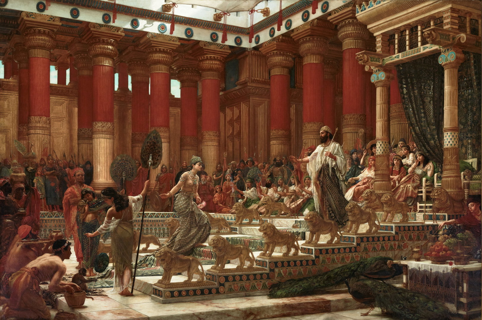 The story of the Queen of Sheba’s visit to Solomon seemed to captivate Venetian artist Tintoretto, who made at least seven versions of it. Tintoretto places the queen in the centre of his courtly setting. Dressed in fashionable Venetian attire, she lowers her head modestly before the elevated king, raising her hand to her chest as a sign of respect.