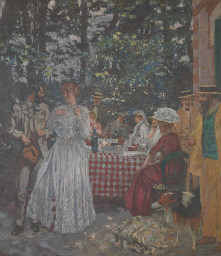 In 'La Terrasse at Vasouy, The Lunch' Edouard Vuillard seems to have used either zinc white, titanium white or lithopone, perhaps because the artist preferred the purer white colour of zinc and titanium pigments over the warmer tint of lead white.
