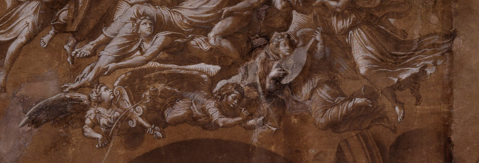 Pen and ink and brown wash on paper tinted brown, 112.5 x 107 cm