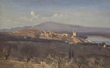Corot visited Avignon on a number of occasions: in May 1834, in July 1836, when he was accompanied by the Orientalist painter Prosper Marilhat, his pupil Gaspard Lacroix, and the painter Achille-Adolphe Francey, and lastly in 1843. This view is most likely to date from the 1836 visit.