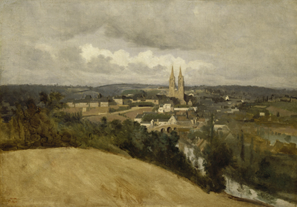 This thinly painted foreground is typical of Corot’s work of this period, when he often deliberately left his foregrounds less highly worked in order to focus the eye on the most important part of the picture, the middle-ground8. 'View of Saint-Lô' of 1833 (R756) (Paris, Musée du Louvre; fig. 7) also features an undefined foreground, a pale thin brown layer rapidly brushed over the ground.
