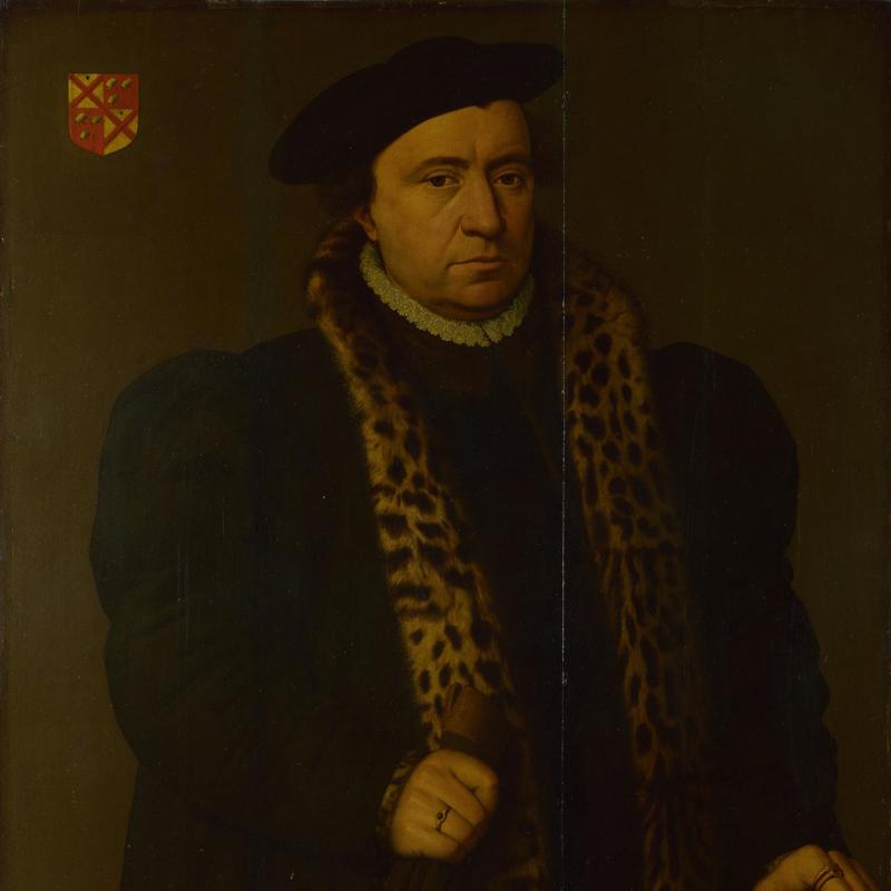 Recent research, part of the Gallery’s ongoing programme of recataloguing the permanent collection, may have found the answer. The physical evidence and the coat of arms at upper left indicate that the painting was made in or near Brussels in about 1560. Two portraitists of note were active in the city at that time, the more important being Michiel Coxcie (1499–1592).
