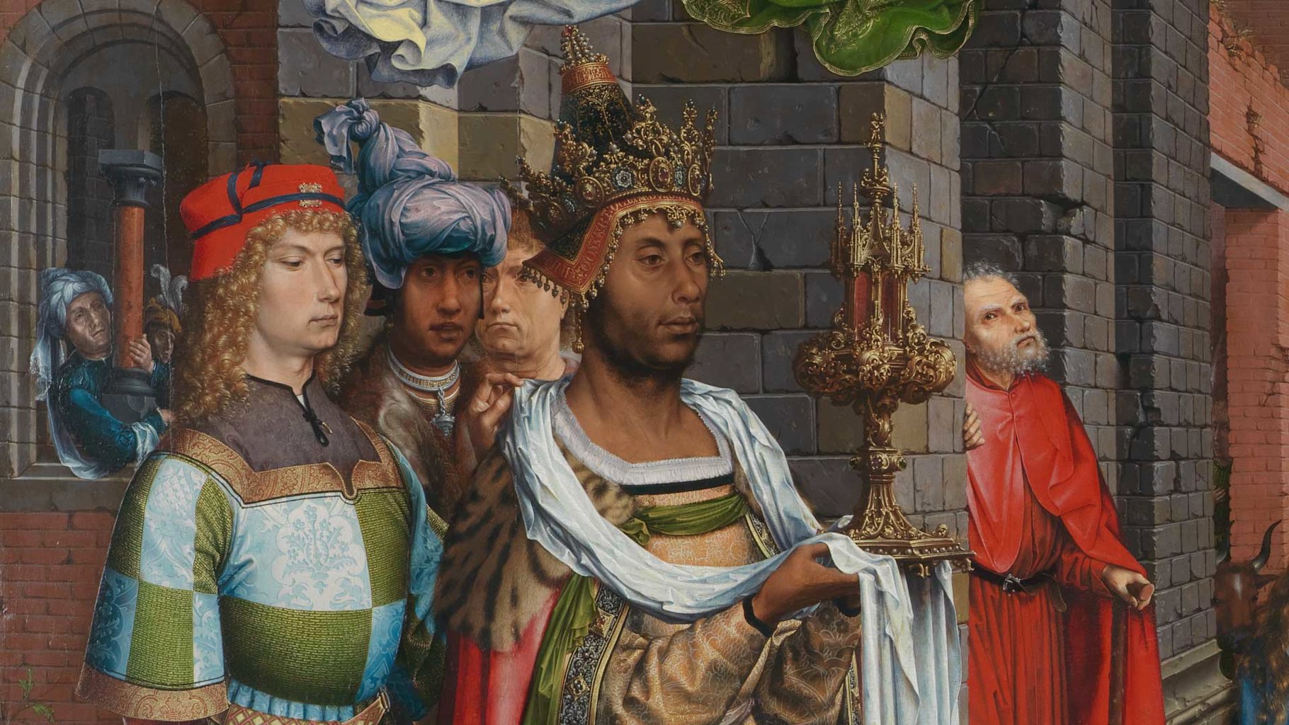 Caspar's face may be an image of the man who commissioned the altarpiece, the wealthy Daniel van Boechout.
