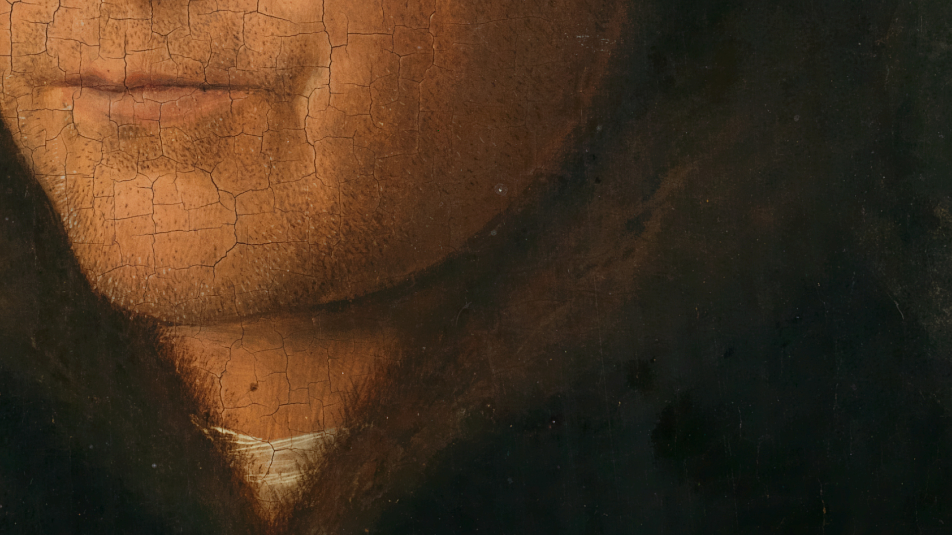 Van Eyck's oil painting technique is astonishing. As always it's the so-called 'imperfections' of a human face that bring it to life and give it character. He uses small brushstrokes for each bristle, painting some lighter as they catch the light; the facial hair helping to describe the contours of his chin and mouth.