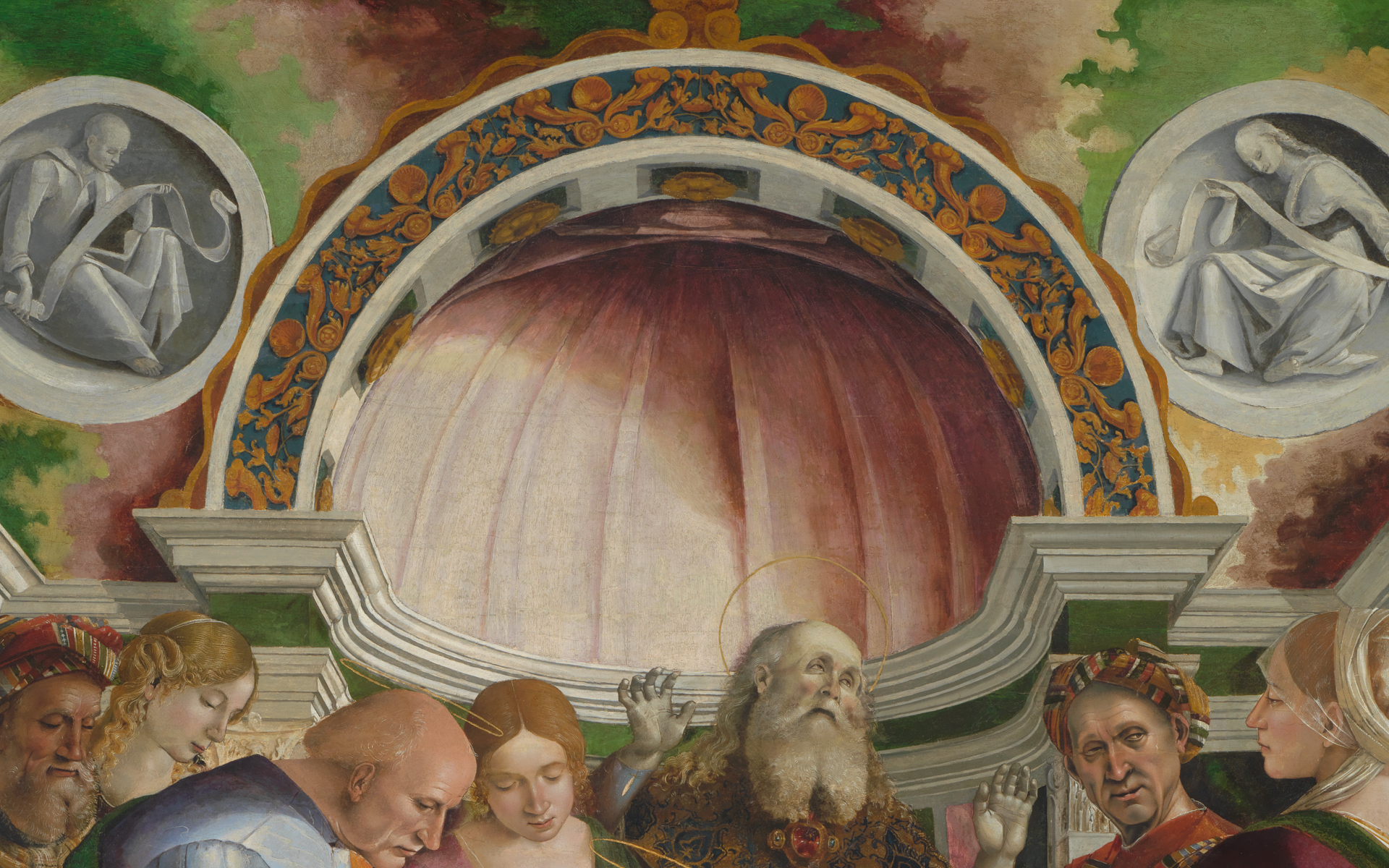Something we can't fully appreciate is Signorelli's clever architectural setting. It is not imaginary. If we were able to visit the church of San Francesco in Volterra, we'd see how Signorelli designed the painting to fit perfectly in its surroundings.