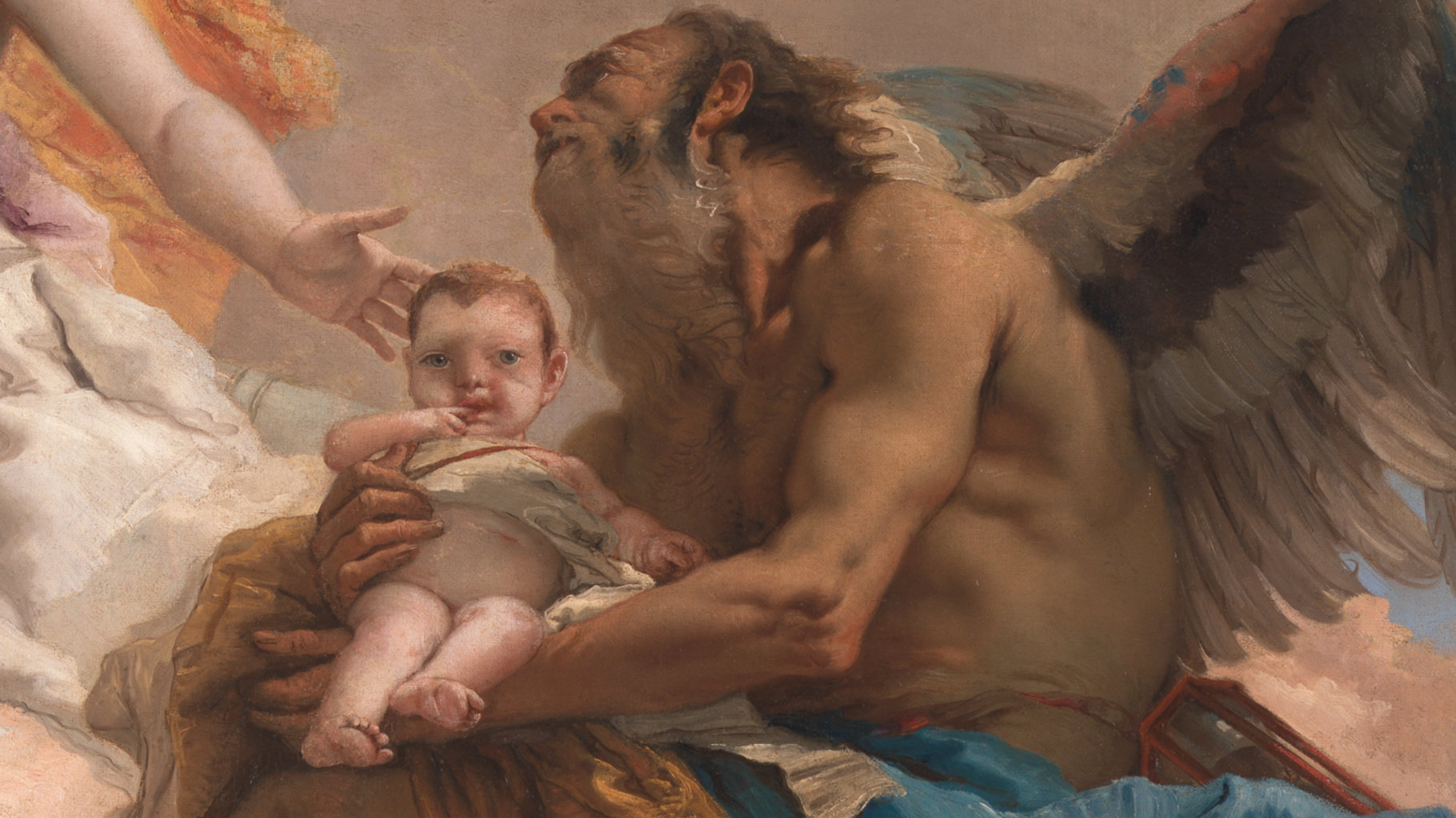 If we look closely at Time's wings, we can see quite how lose Tiepolo's brushstrokes are.