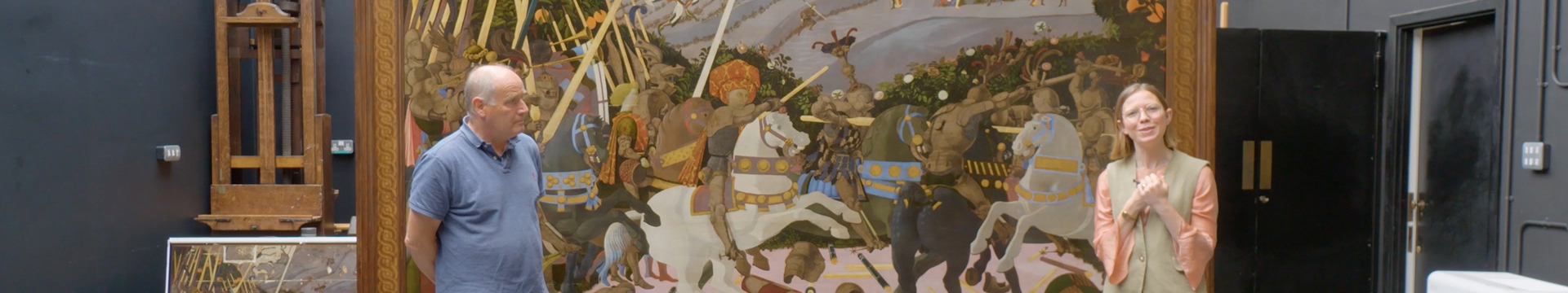 Go behind the scenes in our Conservation Studio as Conservator Paul Ackroyd and Curator Imogen Tedbury share what we've learnt about Uccello's 'Battle of San Romano' on the completion of its latest conservation journey.