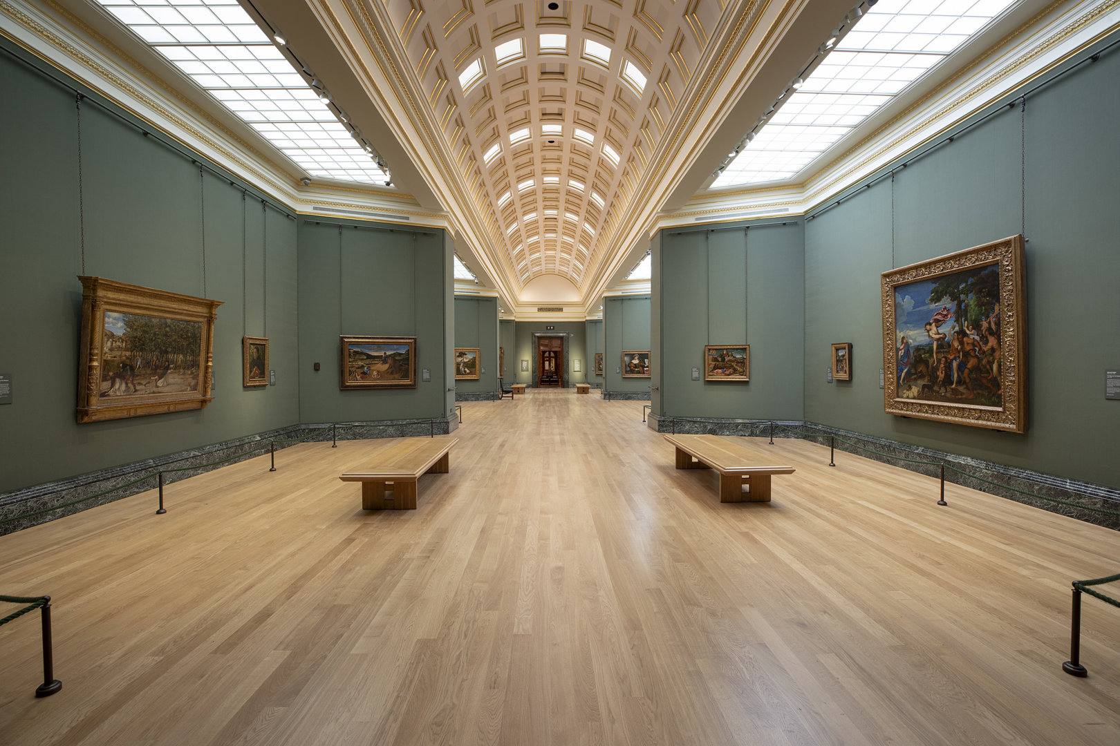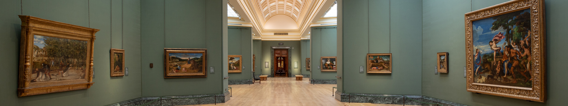 In 1929, during the planning process, the elected architect, Sir Richard Allison created a model of the room, complete with movable screens and frames for experimental hanging. Even a century ago, the room was intended to hang 'Venetian and North Italian pictures' just as it is today. The wall coverings were agreed to be light, the fabric to be grey and the moulding to be painted grey to match. This was inspired by the Museo Nacional del Prado in Madrid.
