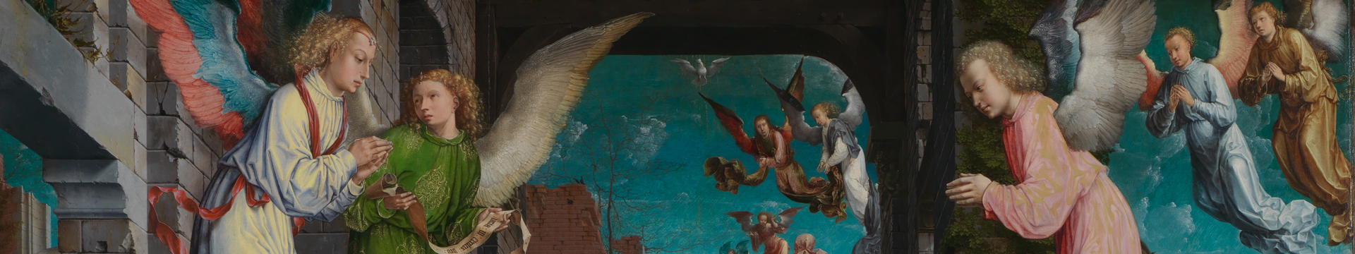 In this small devotional painting Geertgen tot Sint Jans (‘little Gerard of the Brethren of Saint John’) does not show the baby in traditional swaddling clothes. Instead, the tiny naked child exudes rays of supernatural light which illuminate the night-time scene, one of the first realistically painted night scenes in Northern art.