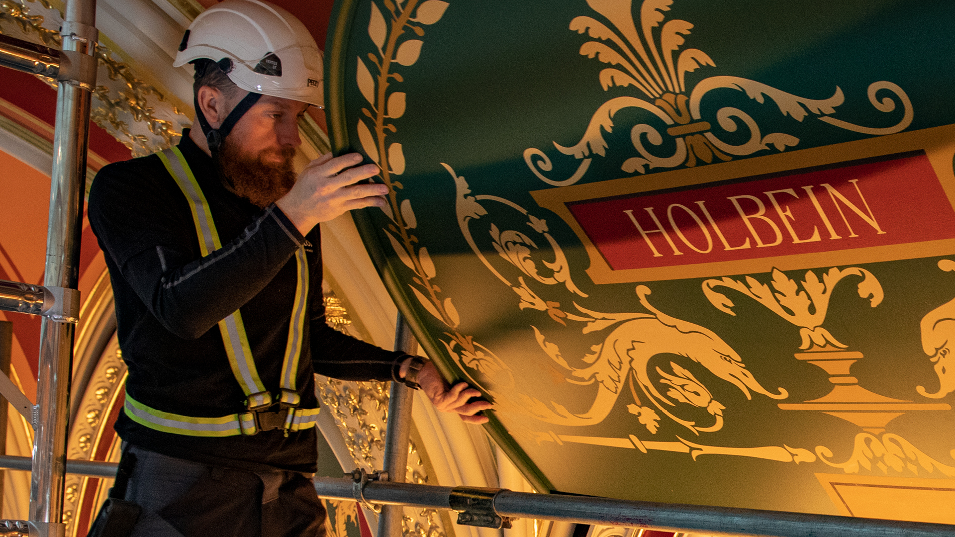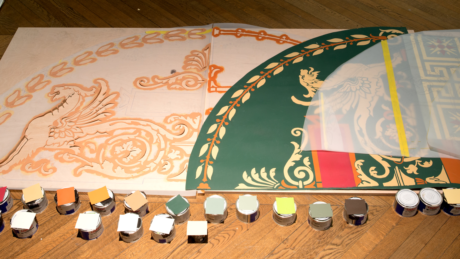 In the run up to the project, during 2017 and 2018, a specialist conservator took nearly two hundred paint samples from high up near the room's ceiling. These revealed the bright colours of Barry’s original decorative scheme (as in Gabrielli’s painting) underneath the white overpaint.