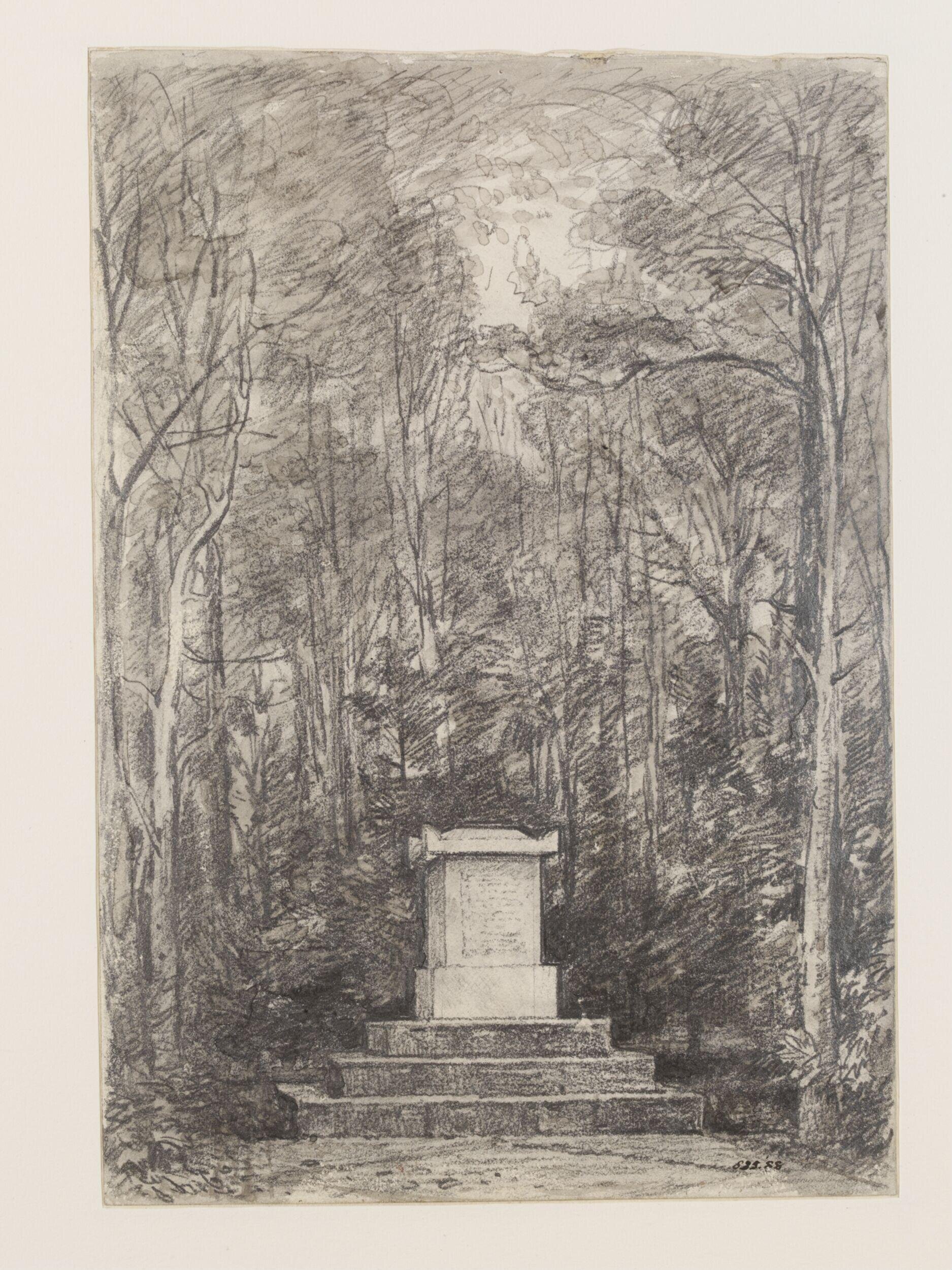 During a trip to Coleorton Hall, where he had been invited for the purpose of studying Beaumont's collection, Constable made some pencil drawings of the grounds, including this one of the cenotaph to Sir Joshua Reynolds.