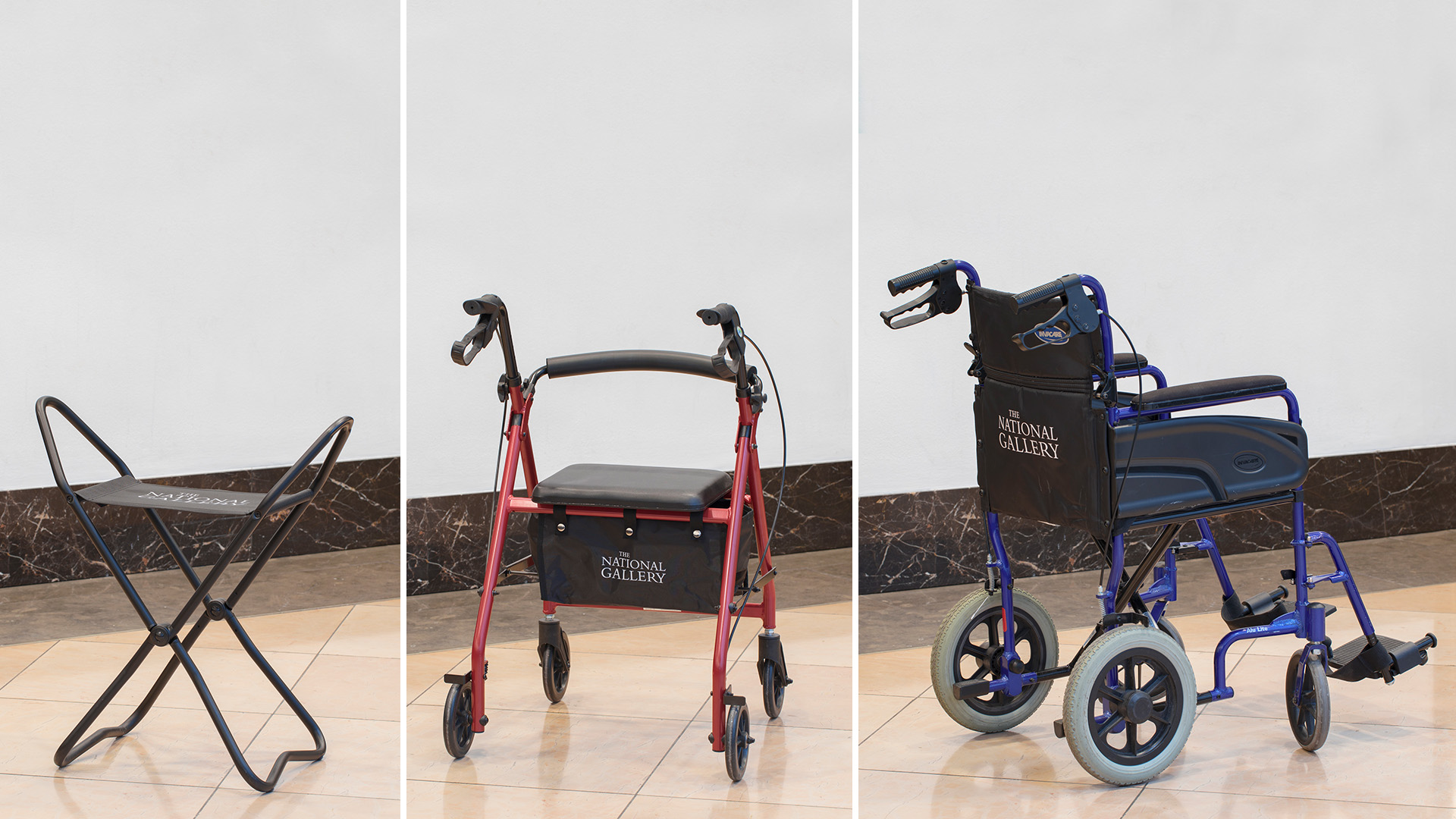 Self-propelled and standard wheelchairs as well as a rollator are available to reserve before you arrive – please call 020 7747 2885. A limited number are available on a first come, first served basis at the Getty entrance. Folding stools are also available. Please ask at the welcome desk at the Getty entrance when you arrive.