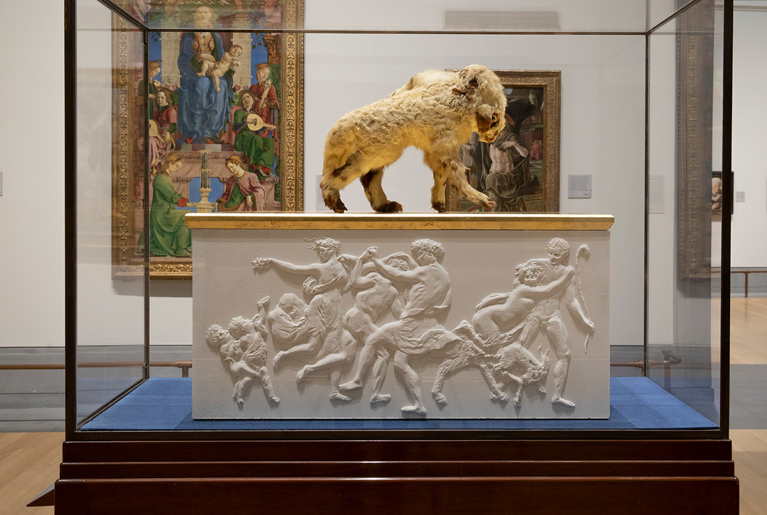 Ali Cherri, our Artist in Residence, presented work that considered how histories of trauma can be explored through a response to museum and gallery collections. This exhibition, 'If you prick us, do we not bleed?' introduces cabinets of curiosity into the heart of the Sainsbury Wing, containing assembled fragments that might look like relics from another collection.