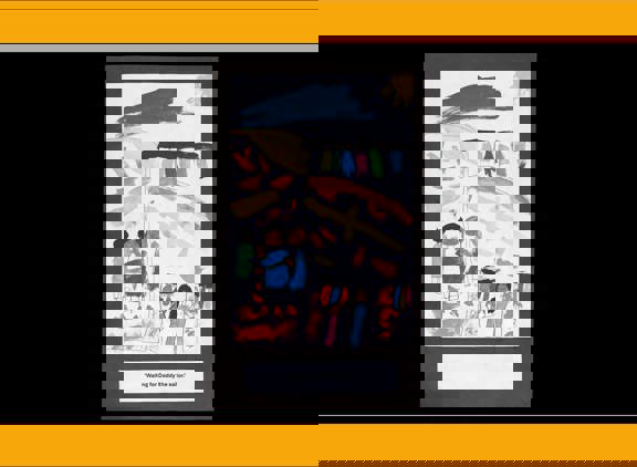 Our pupils asked, “What are the people doing?” and one child suggested that the woman with the child might be holding food ready for a picnic. We decided to make items needed for the picnic, including a printed blanket and invitations to hand out to our neighbours.