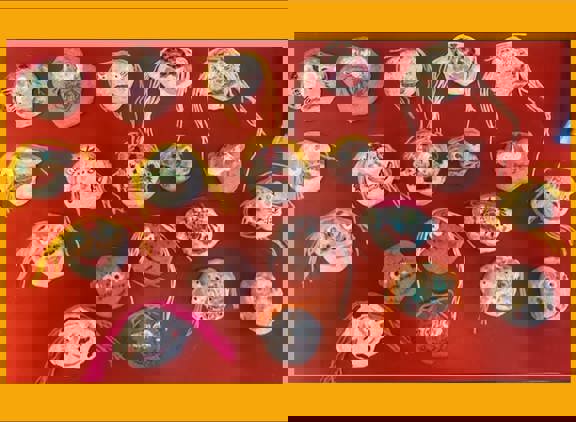 Our favourite part of the painting was the little face above the archway. We wondered if it represented the person who lived in the house. We decided to make clay faces of ourselves, decorated with things that represent us – e.g. our favourite colour, animal or food.